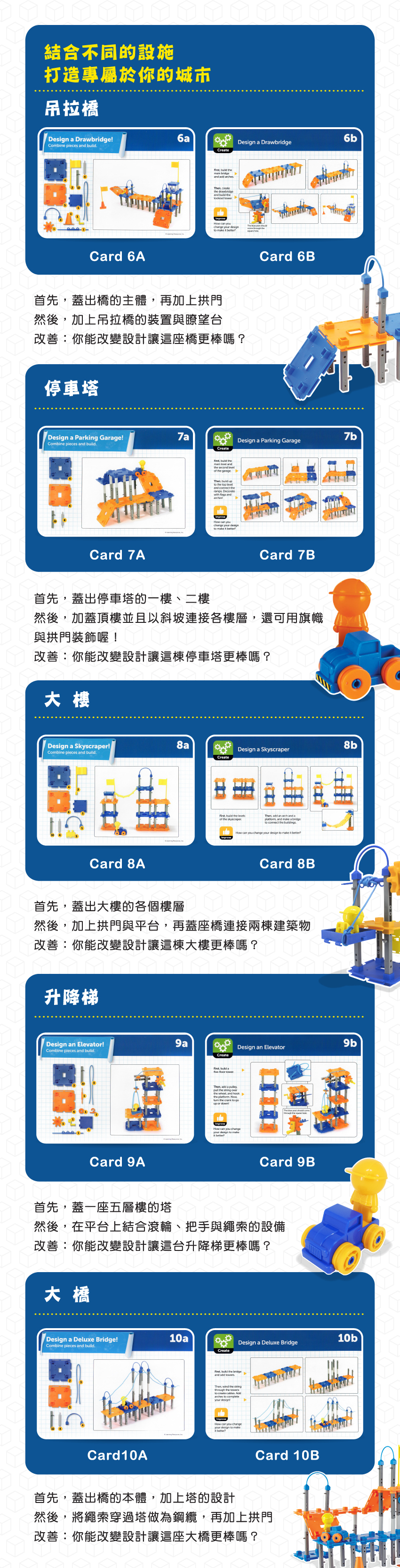 ●共90個零件、10張任務卡,可依任務卡解決問題或建構獨一無二的城市