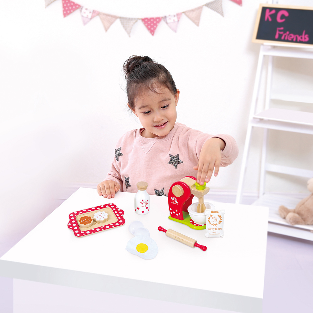 主體為攪拌機、和麵盆。簡易的機關設計及放置順序可訓練基礎的物體操作邏輯。配件的麵粉袋、牛奶罐、雞蛋、擀麵棍、餅乾及托盤。