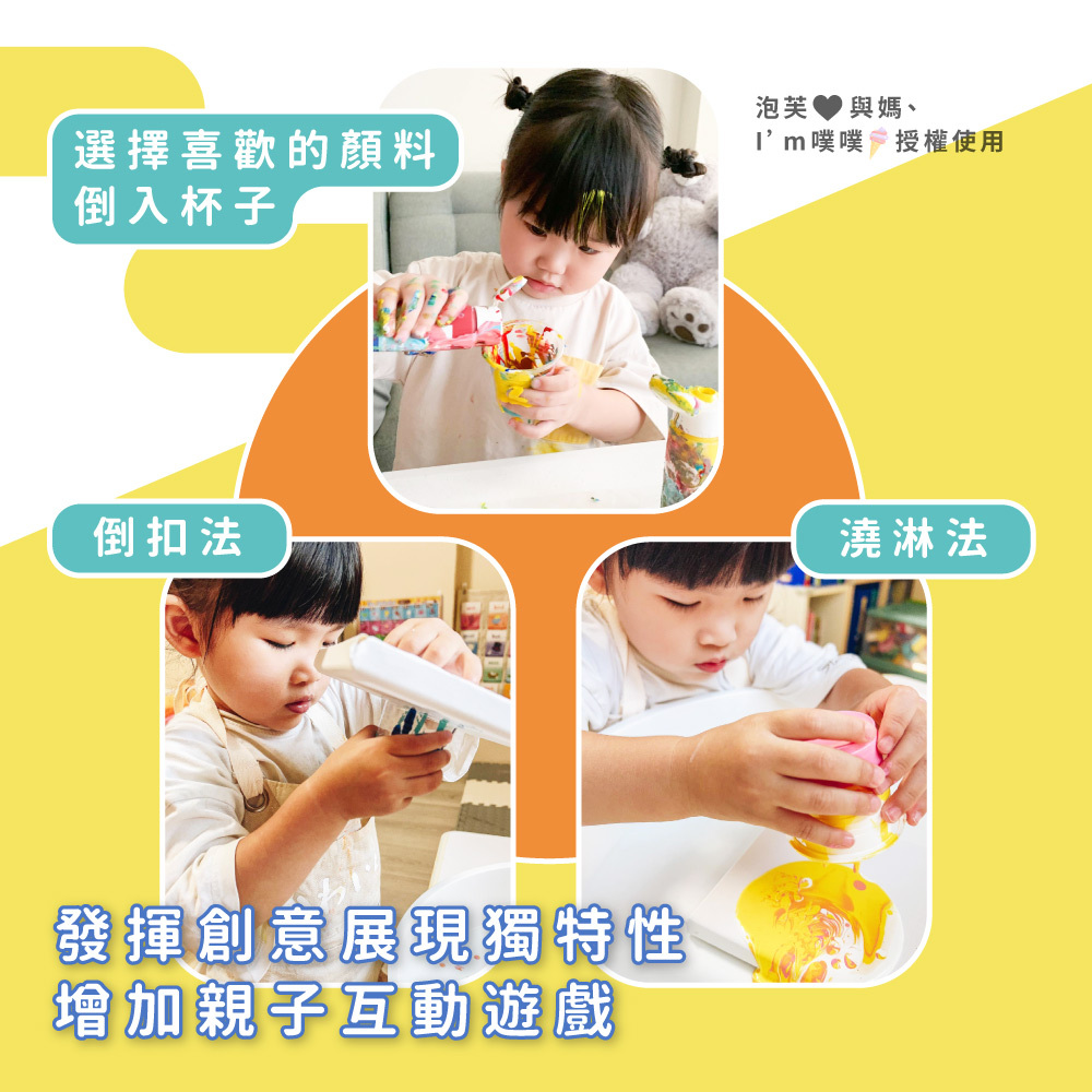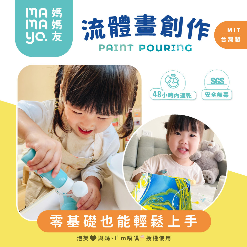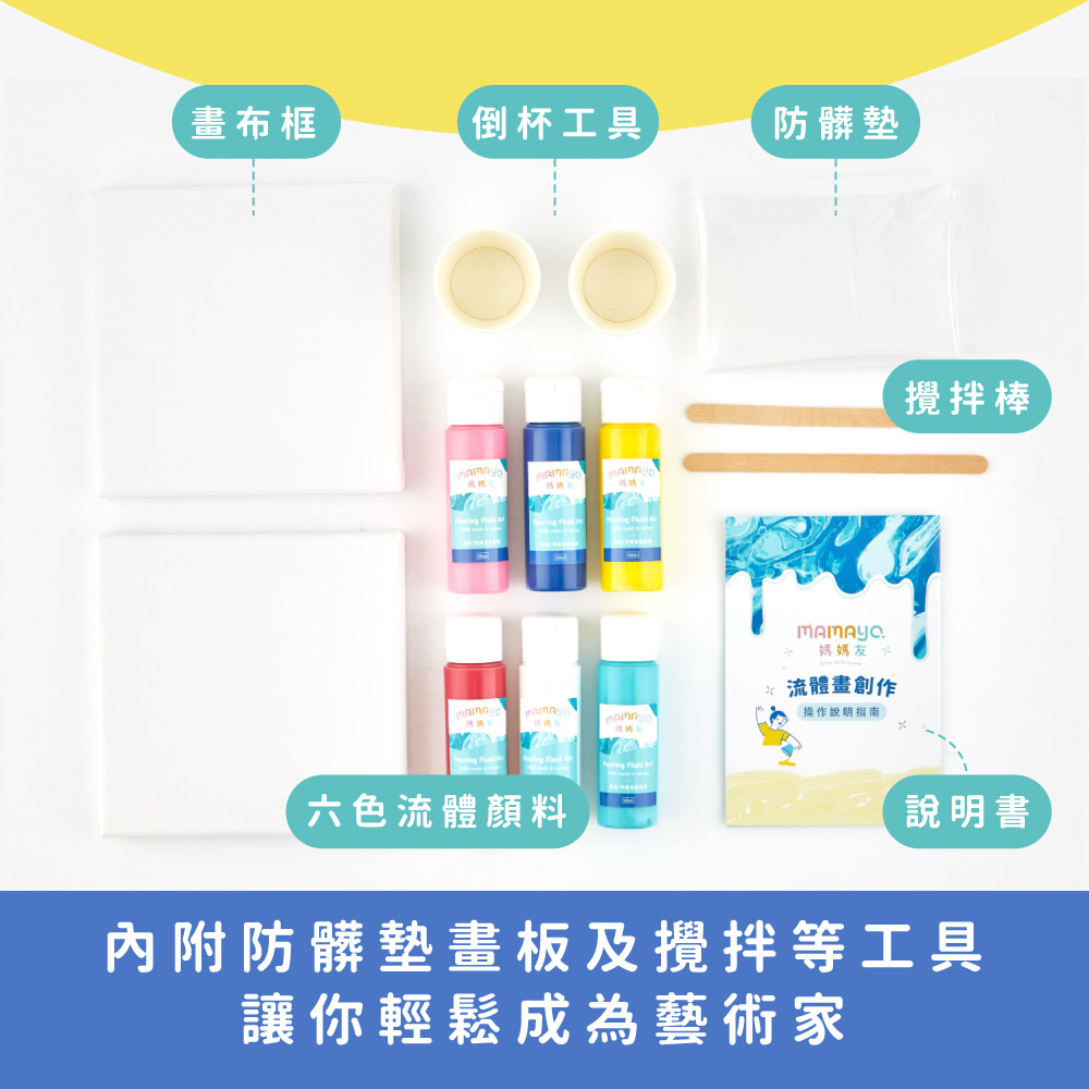 與坊間流體畫不同,顏色飽和,不容易掉色,內已將細胞劑融入,新手也能做出細胞畫效果,套組內附多款貼心流體畫板、攪拌棒等工具輕鬆製作