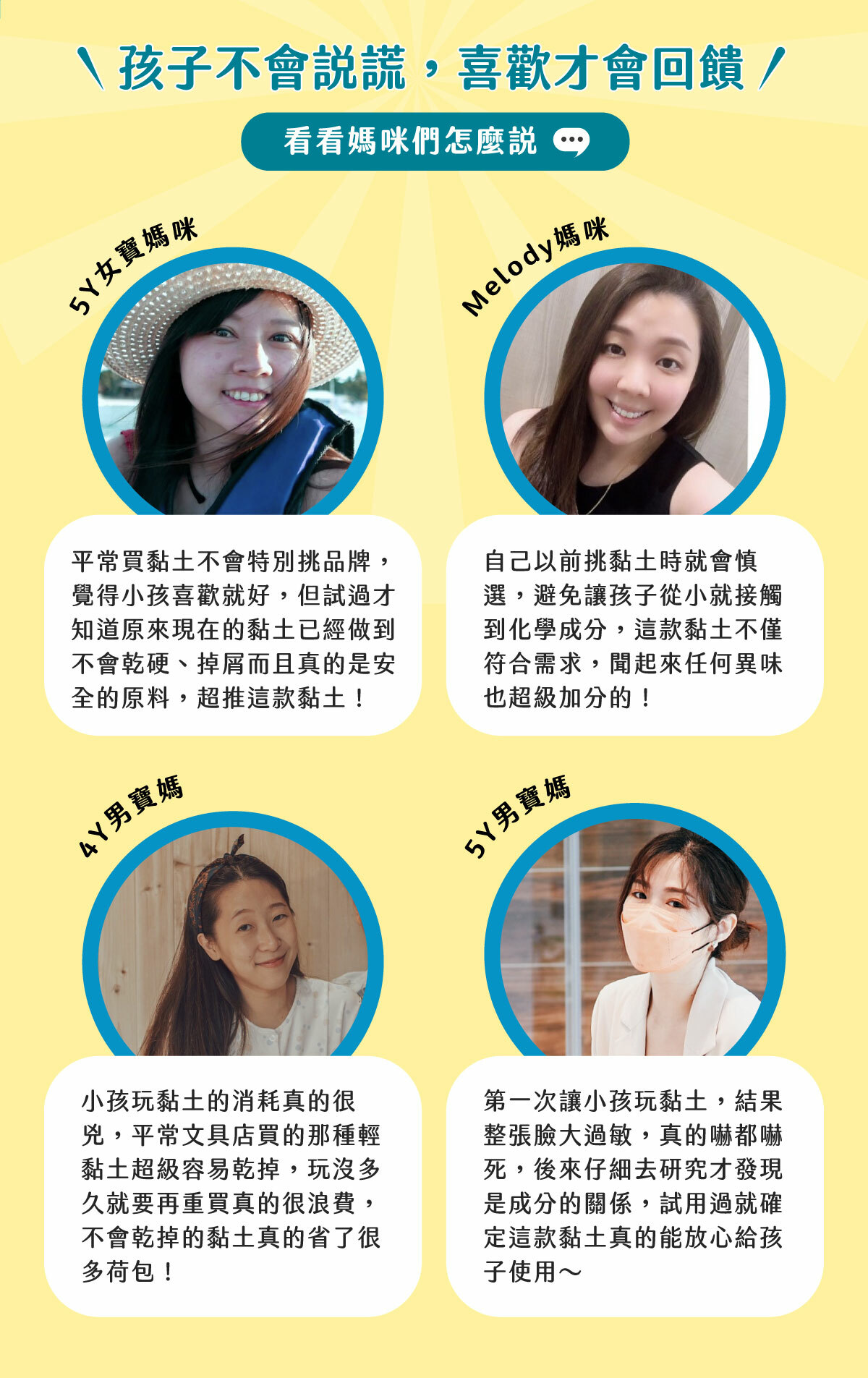 注意事項:玩樂黏土的過程請避開紡織品,若發生時請盡速使用黏土互沾