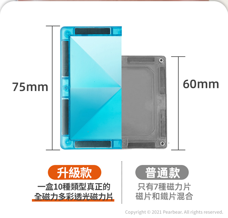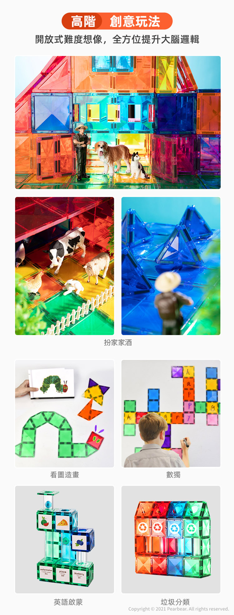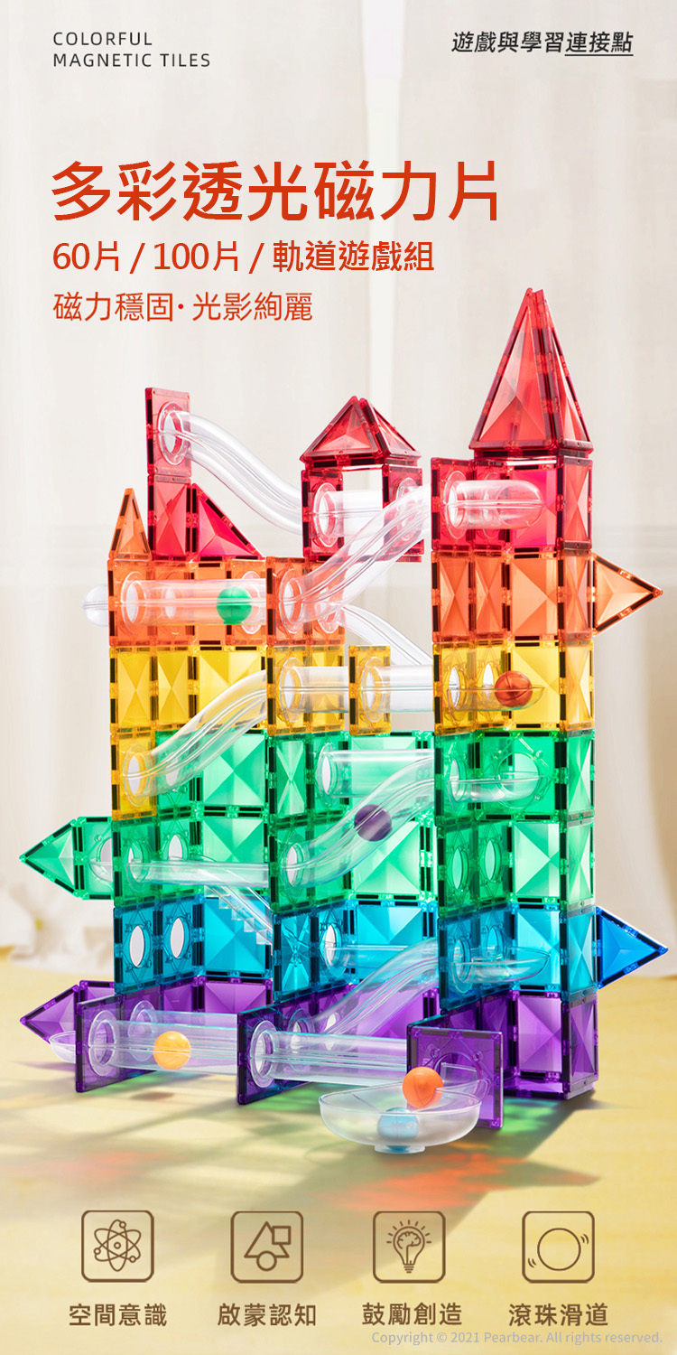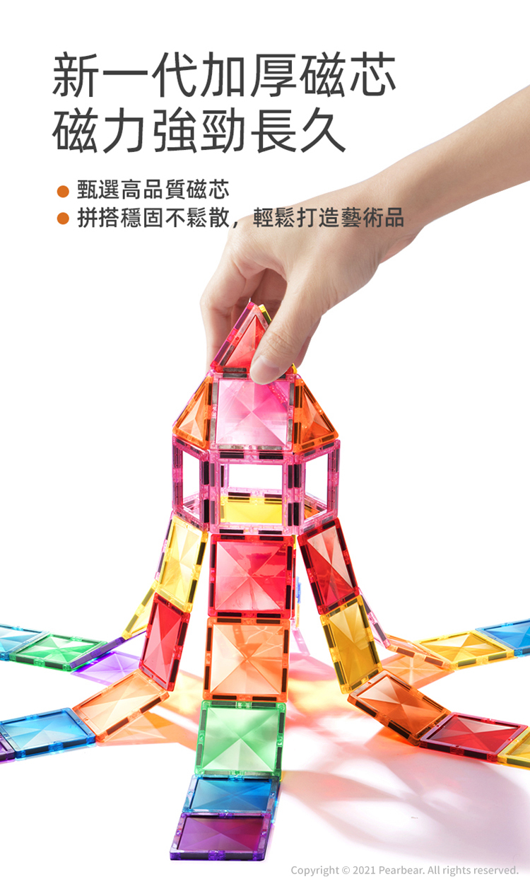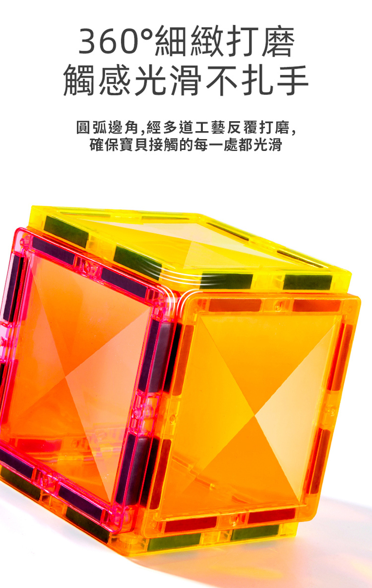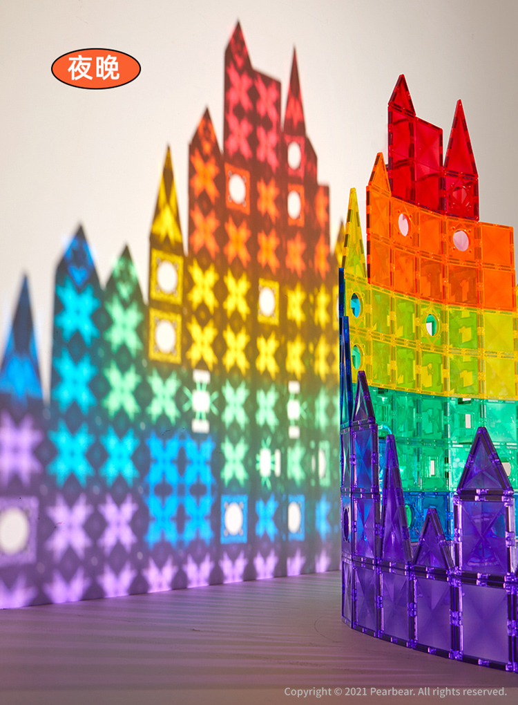 "八種經典顏色(紅、橙、黃、綠、藍、靛、紫、粉),豐富寶貝視覺體驗。磁力片色彩純正,啟蒙寶貝對色彩的審美認知。優選ABS材質,無異味更安心。貼心收納袋,玩好統一存放,從小培養寶貝自主收納習慣。