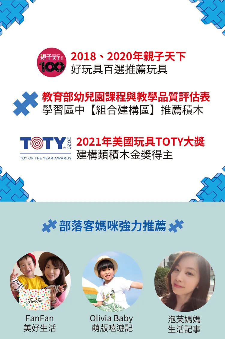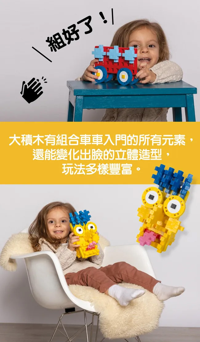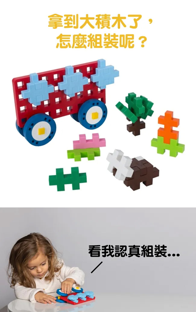 加加積木的「雙十字」造型,上下左右都能隨興拼接,