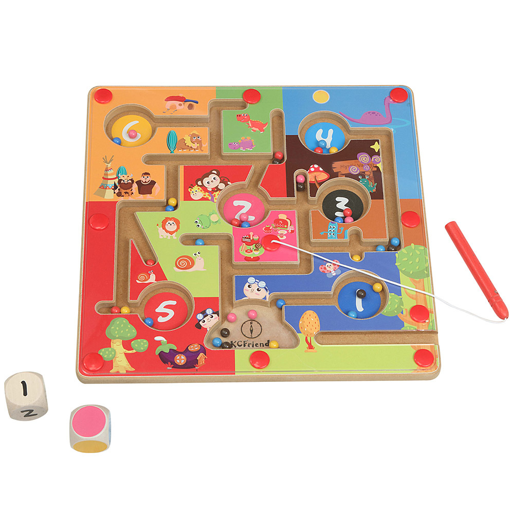 鼓勵孩子使用手部肌肉、感受重力的同時鍛鍊手部的控制能力,將磁珠移動至需要前往的位置。遊戲可從簡易的顏色分類、數字認識、更可運用數字及顏色骰子形成多人計分遊戲增加趣味性更可同時練習加法。