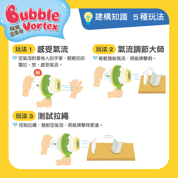 孩子可嘗試不同力道、角度調整或加入障礙物,自由挑戰、發現更多氣流樂趣,學習更靈活!