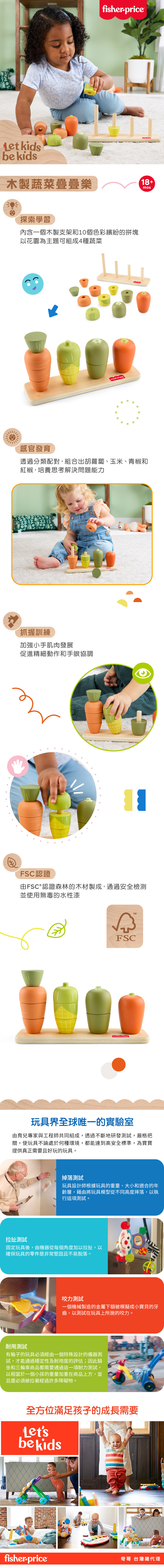 1. ""費雪木製蔬菜疊疊樂""為幼兒提供分類和堆疊樂趣。